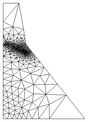 Second mesh refined around the crack trajectory simulated on the initial mesh.
